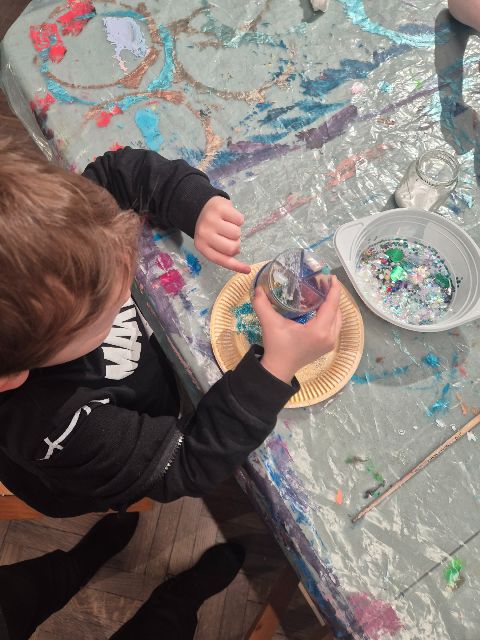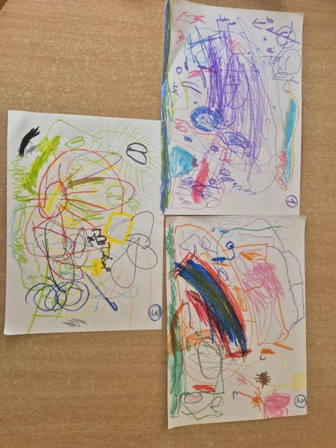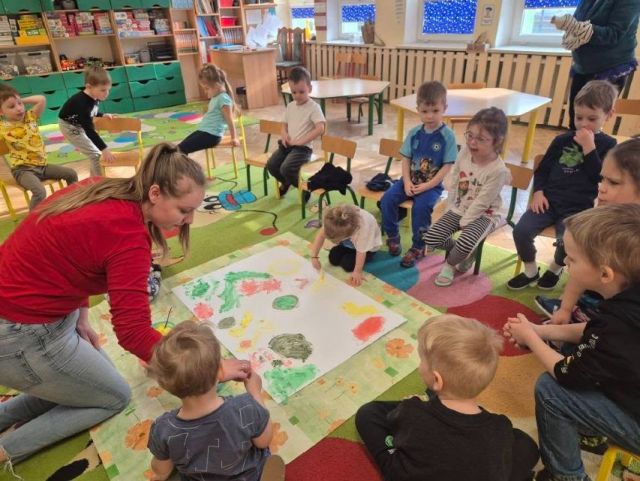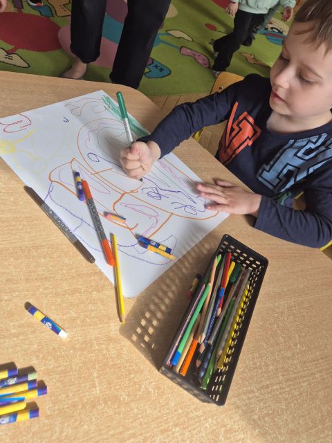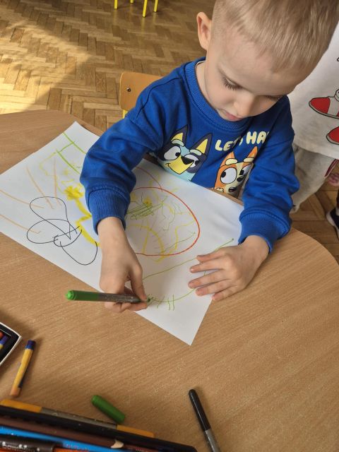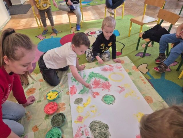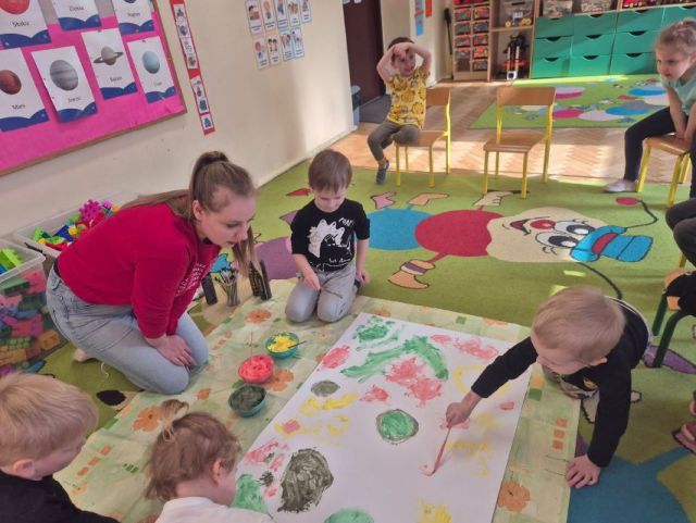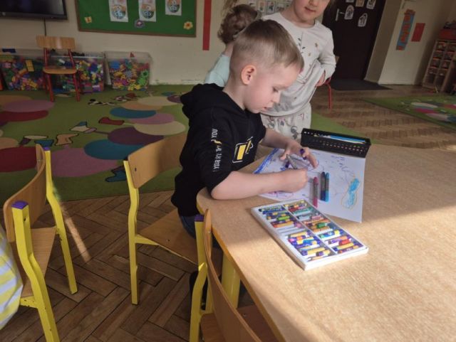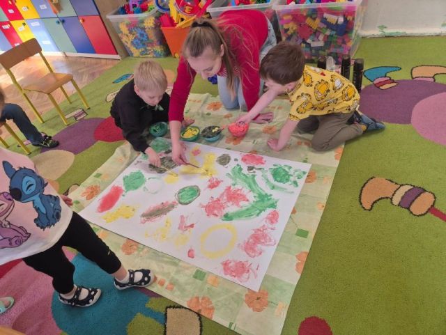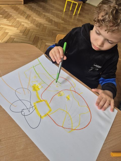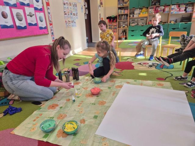 - Zadanie nr.3 "Laboratorium koloru" - eksperymentowanie z barwą, odkrywanie odcieni, tworzenie dzieł poprzez eksperyment plastyczny; zabawa abstrakcyjna