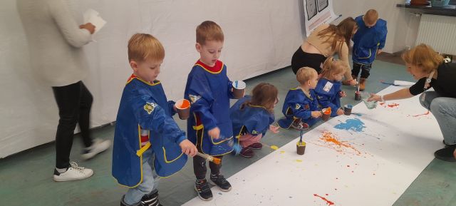 - Zadanie nr.10 " Szybki obraz" - sztafeta abstrakcji, każde dziecko malowało przez 1 minutę.